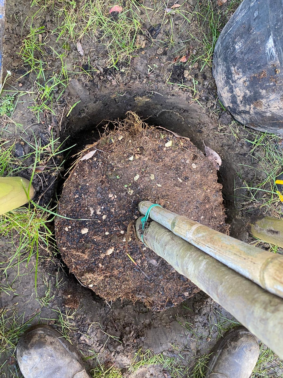 Double check the sides are packed in with no air pockets and the top of the rootball is firmly level with the rest of the ground